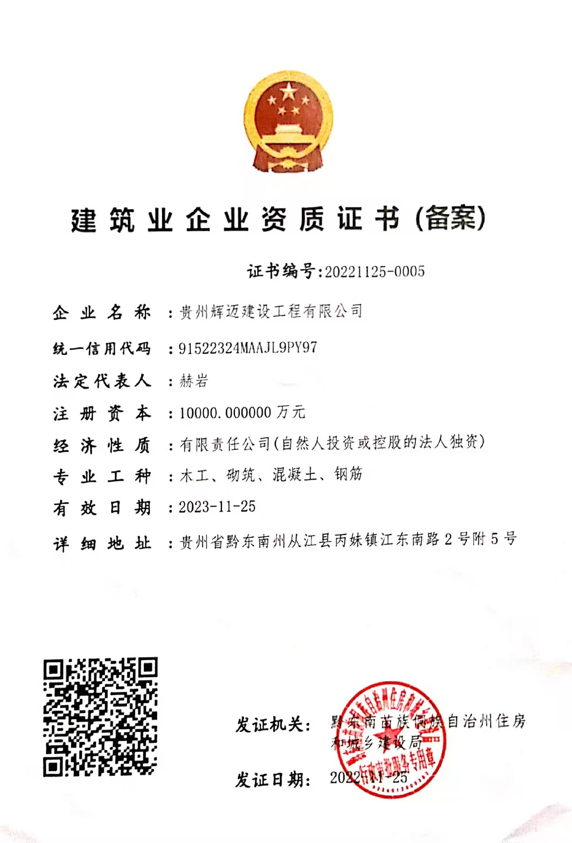 貴州輝邁建設(shè)工程有限公司歡迎您工程資質(zhì)加盟分公司